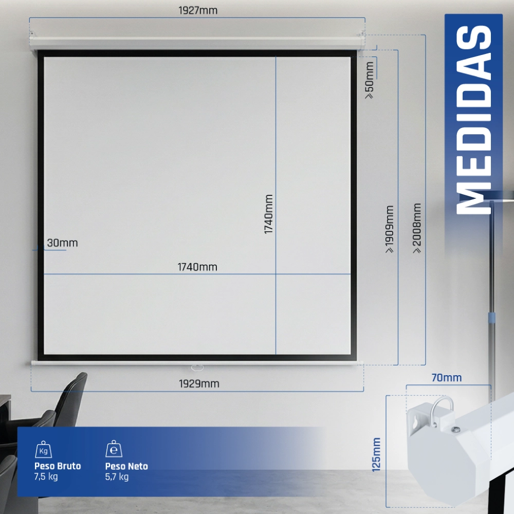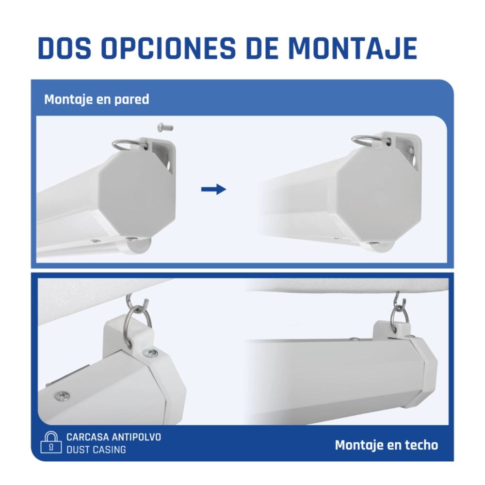 Usos Pantalla proyección para techo o pared, indicada para todo tipo de proyecciones