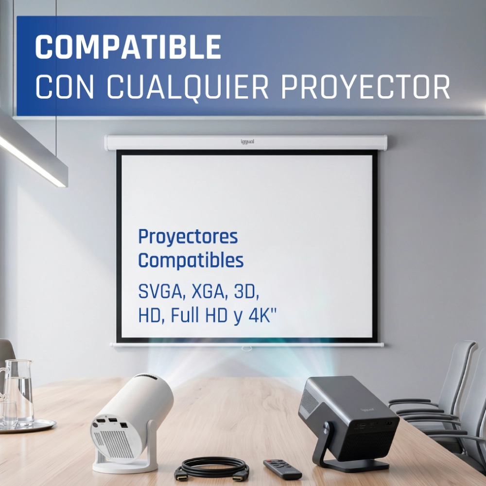 - Ideal para cualquier tipo de proyector, SVGA, XGA, 3D, HD, Full HD y 4K